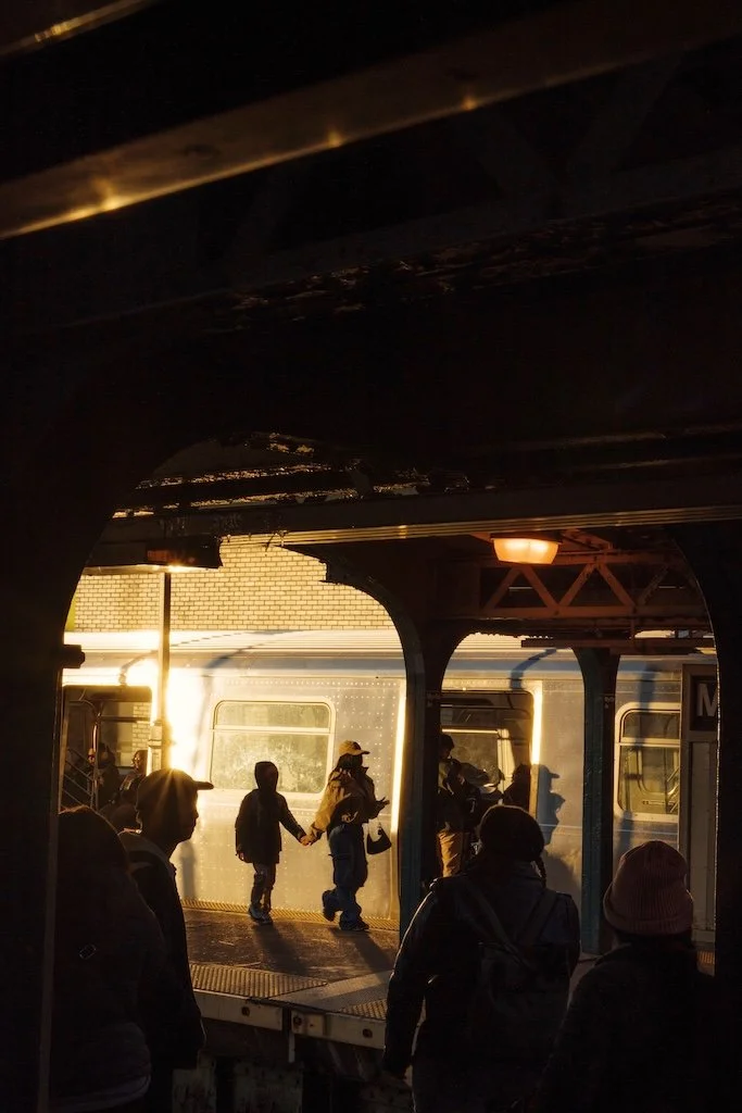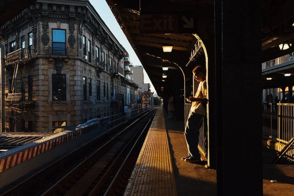 Below is a collection of some my favorite frames captured on these subway platforms where I feel the element of natural light compliments the subjects that fill those spaces. I focused a lot on shadow play and how the light interacts with the environment, metallic surfaces and iron beams.